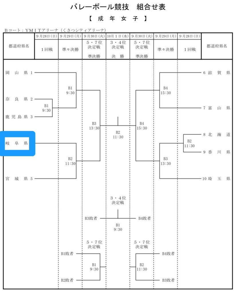 岐阜県代表(リオレーナ)の試合日程
