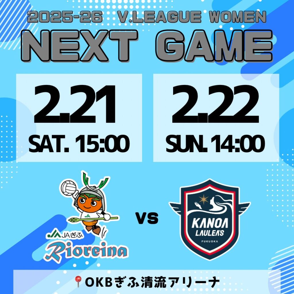 2/14更新!来場者プレゼント【2025-26 V.LEAGUE WOMEN】2月21日(土)・22日(日) 岐阜大会リオレーナホームゲーム情報